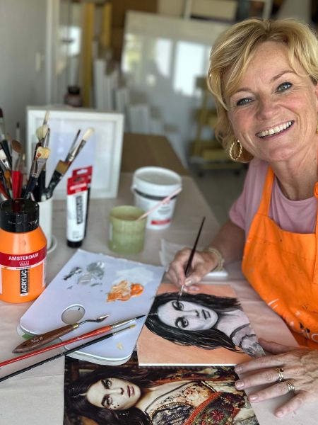 ‘Ik durfde me nooit te wagen aan portretschilderen, maar door de uitleg en de video’s ben ik de uitdaging toch aangegaan. Zó blij mee!’