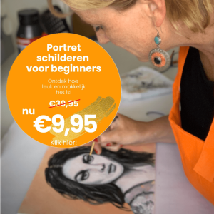 Portretten is inderdaad wel mijn ding maar het gaat bij ikwilschilderen om het creëren en jezelf ontwikkelen. Mijn technieken, manier van werken, gebruik van materialen, opbouw van het schilderij, enz., kun je gebruiken bij elk gewenst onderwerp. Integreer het in je eigen werk en je gaat je creatief ontwikkelen en een eigen stijl creëren.