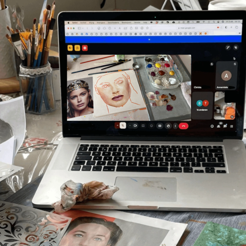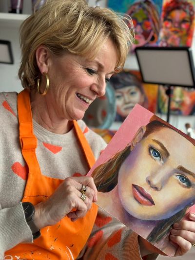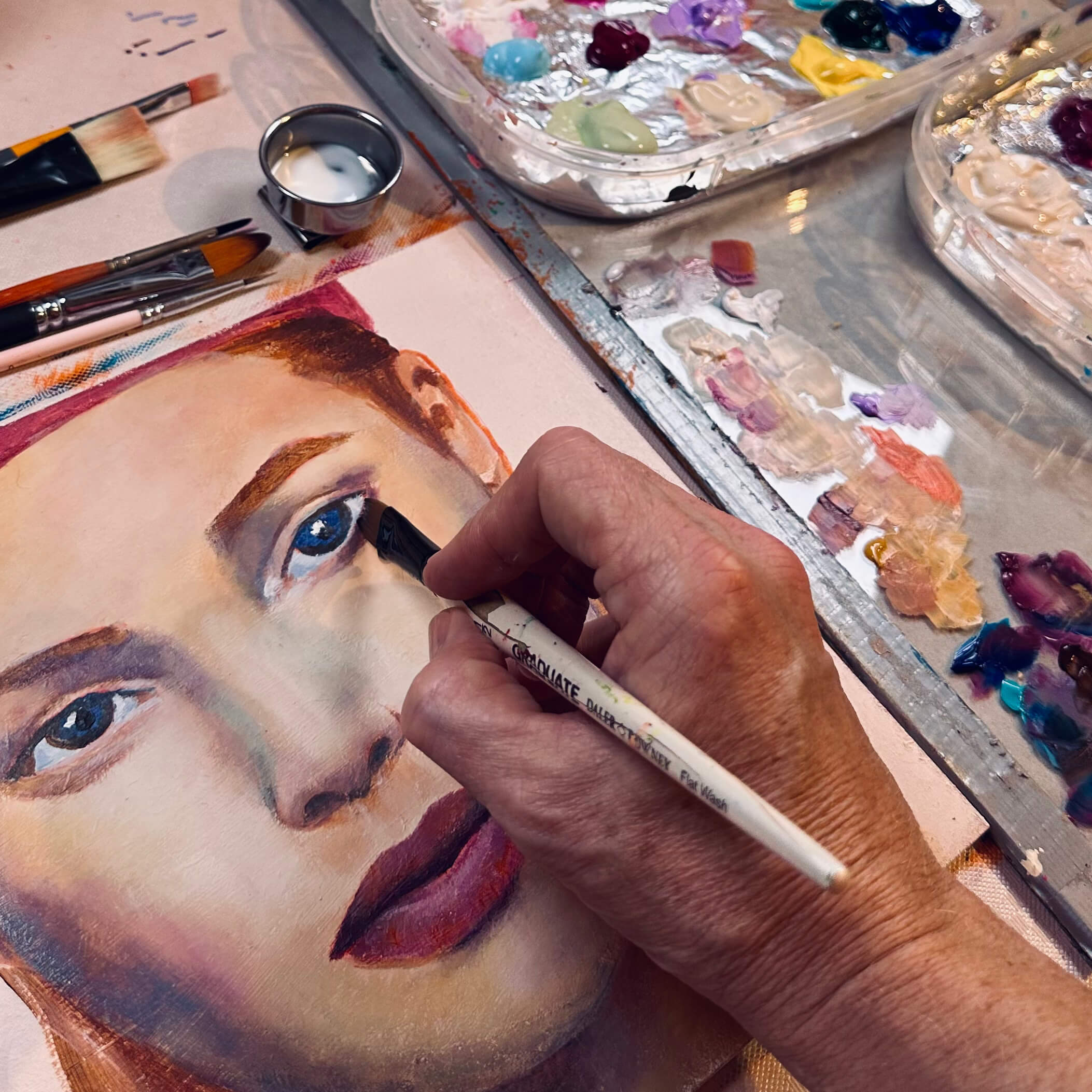 Geen vaste volgorde, geen strak stappenplan, maar precies dat wat jouw portret op dat moment nodig heeft. Dat maakt deze live schilderlessen online en de portretten zo uniek.
