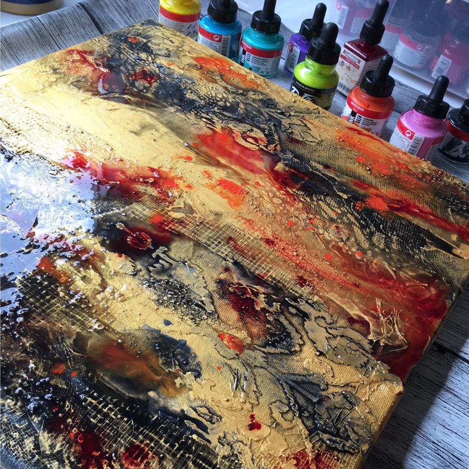 - 13.30 uur schildersessie: ondergrond bewerken met diverse materialen + techniekles kleurmengen