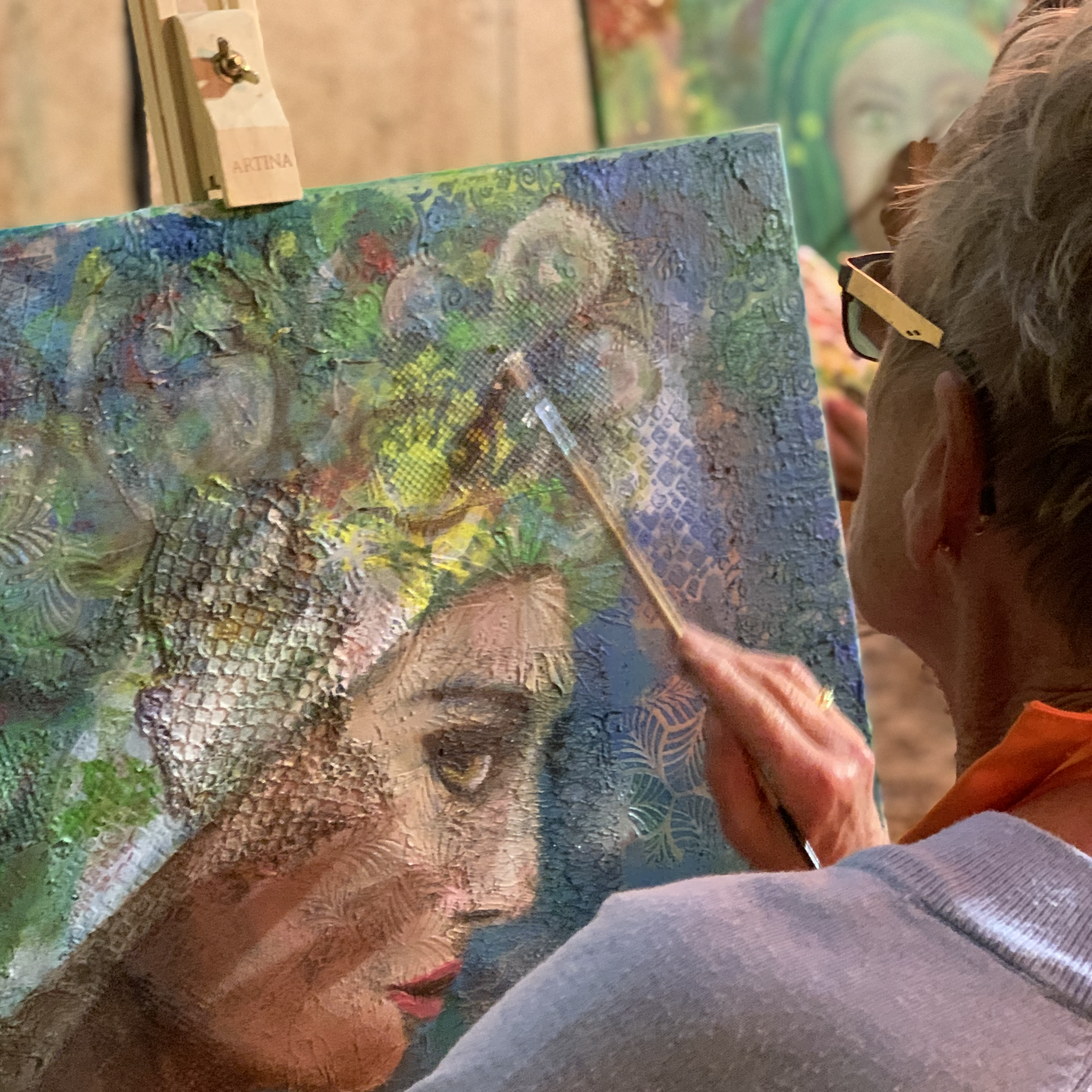 Mijn kleurrijke werken worden laag over laag opgebouwd met een combinatie van verschillende technieken en materialen. Tijdens deze workshop ga jij een creatief proces met jezelf aan. Je leert alles los te laten en buiten je comfortzone te stappen. Schilderen zonder regeltjes, heerlijk toch? Omdat ik al ruim 10 jaar lang lesgeef, weet ik precies wat jij nodig hebt om nóg meer uit jezelf te halen. Ben jij klaar voor een creatieve schilderworkshop portretschilderen in een prachtige, ontspannen setting waarbij je nooit genoeg krijgt van het landschap? Schrijf je dan nu in.