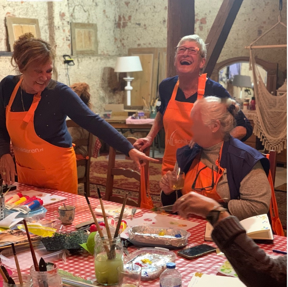 We hebben er ontzettend veel geleerd door Brenda haar enthousiasme en feilloos aanvoelen wat een ieder nodig heeft. Er zijn prachtige unieke schilderijen gemaakt. De sfeer, het verrukkelijke eten en drinken hebben het tot een onvergetelijk weekend gemaakt!